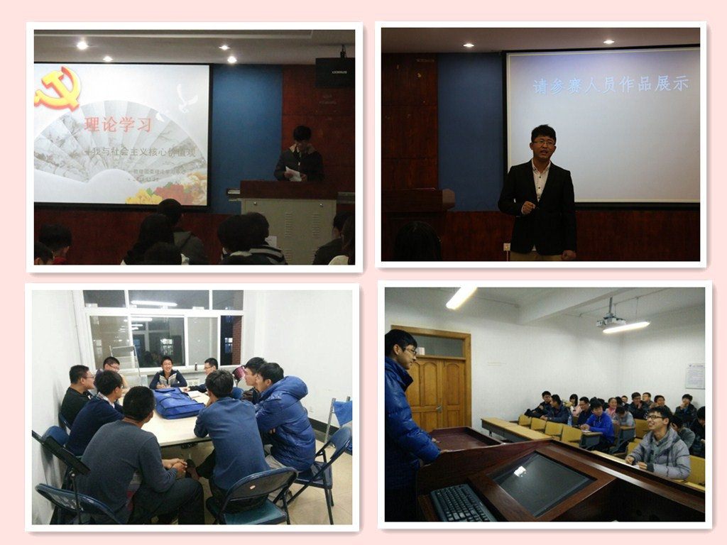组织团支部专题团会,让学生围绕“什么是社会主义核心价值观”、“如何宣扬和落实社会主义核心价值观”两个问题展开讨论,鼓励学生广大青年牢记使命,做社会主义核心价值观的践行者和弘扬者;组织社会主义核心价值观专题学习活动,指导学生从多个角度理解社会主义核心价值观的精神内涵与实质,倡导学生以核心价值观为个人准则,提高自己的文化道德修养;组织“我与社会主义核心价值观”主题演讲比赛,以热点实事和自身经历诠释价值观内涵,呼吁青年大学生自我反省,着力践行。
