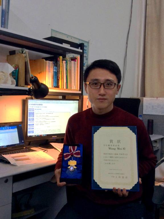近日,在日本物理学会(JPS)2016年秋季大会中,我校华体会(中国)等离子体专业博士生王玮获得了本年度日本物理学会优秀发表赏(奖)。日本物理学会创建于1877年,130年间共涌现出11位诺贝尔物理学奖获得者。优秀发表赏(奖)项旨在表彰于物理学各个领域取得突出进展的在读博士研究生,每个领域最终仅遴选出4人。本届大会共有超过5000名参加者,会议报告及展板总计3600余件。评奖过程首先由会议期间通过不记名投票对1000余场报告进行初选,并最终送于会议组委会通过讨论产生。王玮同学还被邀请参加了获奖后由日本物理学会主办的恳谈会(宴会活动)。本次王玮获奖是该奖项在近三年内唯一一次由中国人获得。