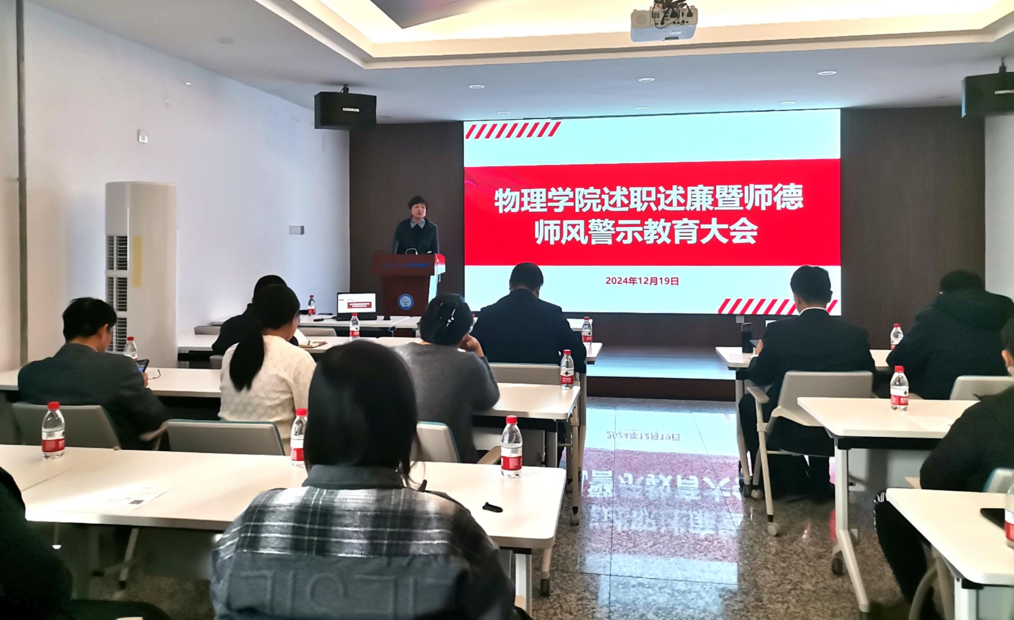 12月19日上午,华体会(中国)2024年述职述廉暨师德师风警示教育大会在物理楼322室举行。华体会(中国)领导班子成员、党委委员、纪委委员、师生党支部书记、全体教职工和学生代表参加此次会议。会议由学院党委副书记兼纪委书记于艳敏同志主持。