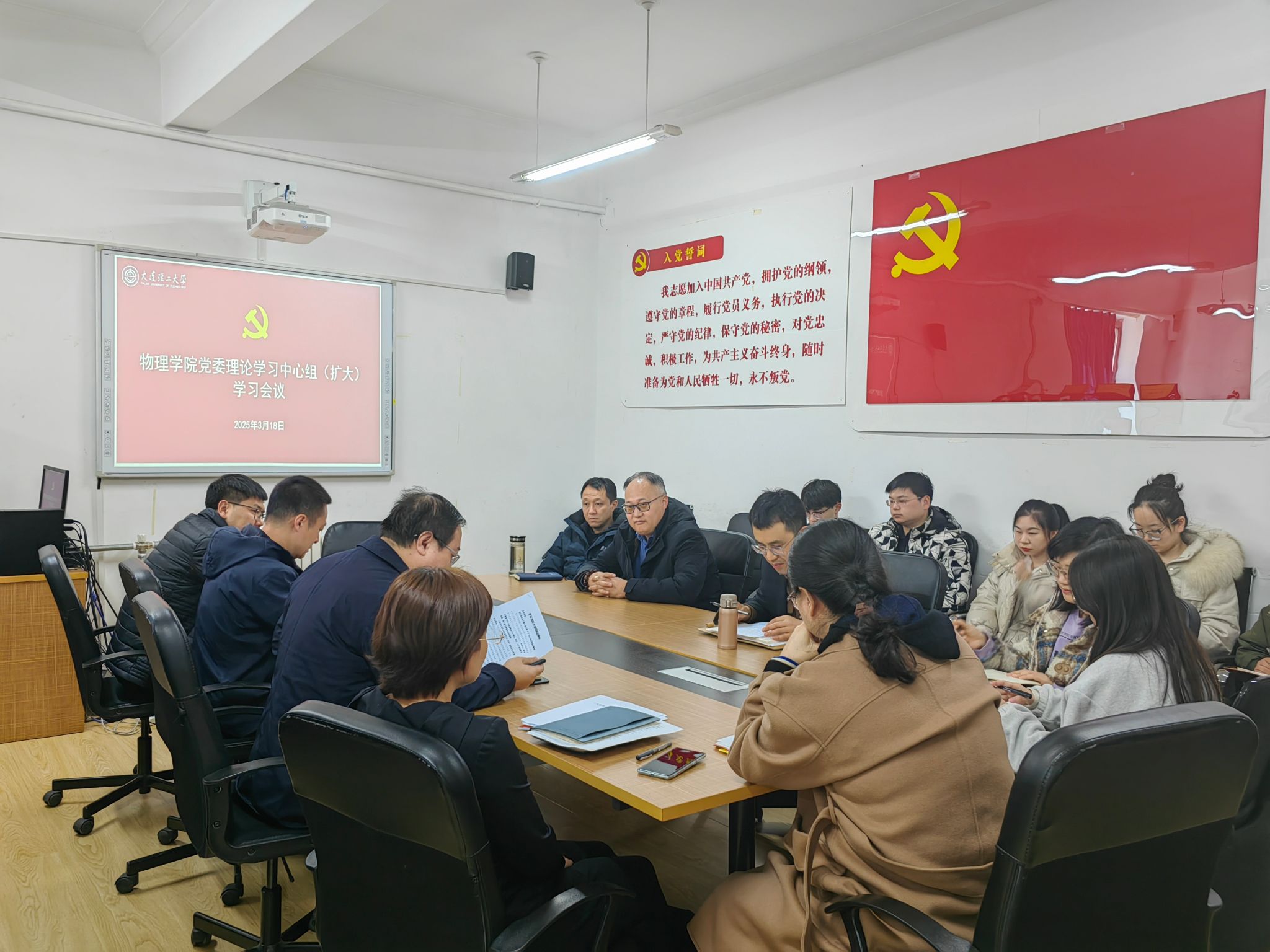 为深入学习贯彻习近平总书记在辽宁考察时的重要讲话精神和2025年全国两会精神,学院于2025年3月18日下午在物理系楼422室召开党委理论学习中心组(扩大)学习会议,会议由学院党委书记于长水教授主持,学院党委委员和各党支部书记参会。