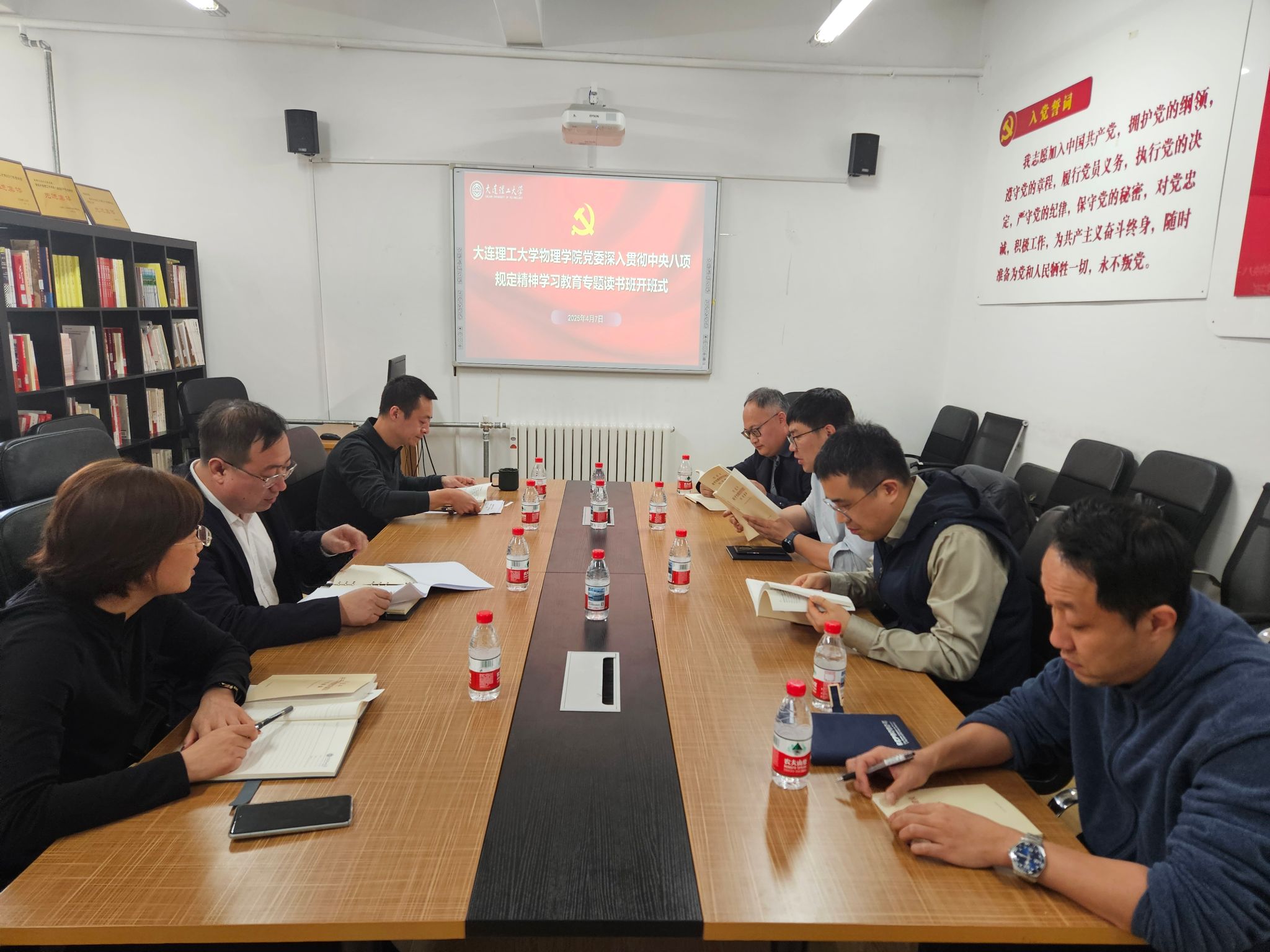 4月7日,读书班开班式在物理楼422会议室举行,党委书记于长水主持会议并作动员部署。他强调,要以“三个坚持”推动学习教育走深走实:坚持原原本本学,深入研读《习近平关于加强党的作风建设论述摘编》等文献;坚持学研结合,通过集体学习、研讨交流深化理论认知;坚持问题导向,将学习成果转化为解决实际问题的能力。会上,全体党委委员系统学习了《习近平关于加强党的作风建设论述摘编》和中央八项规定及其实施细则精神,进一步明确了新时代作风建设的实践要求。参会人员围绕“如何以作风建设助推学院事业高质量发展”展开深入研讨,形成“作风建设与事业发展同频共振”的共识。