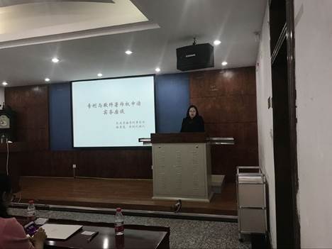 王正汹副院长首先跟与会师生们强调了专利和软件著作权申请的重要性,以及我校近年来在知识产权方面取得的优秀成果。之后,星海专利事务所的徐雪莲女士针对专利审批流程、授予专利的条件、专利文件的组成、软件著作权申请所需准备的材料等实务进行了详细讲解,为今后师生们申请专利及软件著作权提供了相关法律和撰写方面的指导。最后,技术研究开发院的迟殿力老师为学院师生解读了学校颁布的知识产权政策和科技成果转化政策,让师生们明确了学校的相关资助标准,同时针对与教师权益密切相关的成果转让价格、合同签订时知识产权保护、支付费用和报酬等相关注意事项进行了详细解读。
