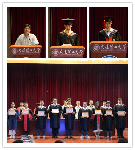 毕业典礼在庄严的国歌声中正式开始,在徐立昕、陈茂笃教授分别宣读了学院2017年授予学士、硕士、博士学位学生名单后,三个专业负责人博士生导师宋远红教授、孙长森教授、梁红伟教授亲手为每一名毕业生拨穗并授予学位证书。之后学院对校先进班集体物1305班,学院先锋党支部本2013学生党支部,辽宁省、大连市、校优秀毕业生等优秀毕业生集体和个人进行了表彰,对他们四年的努力与付出予以充分的肯定。