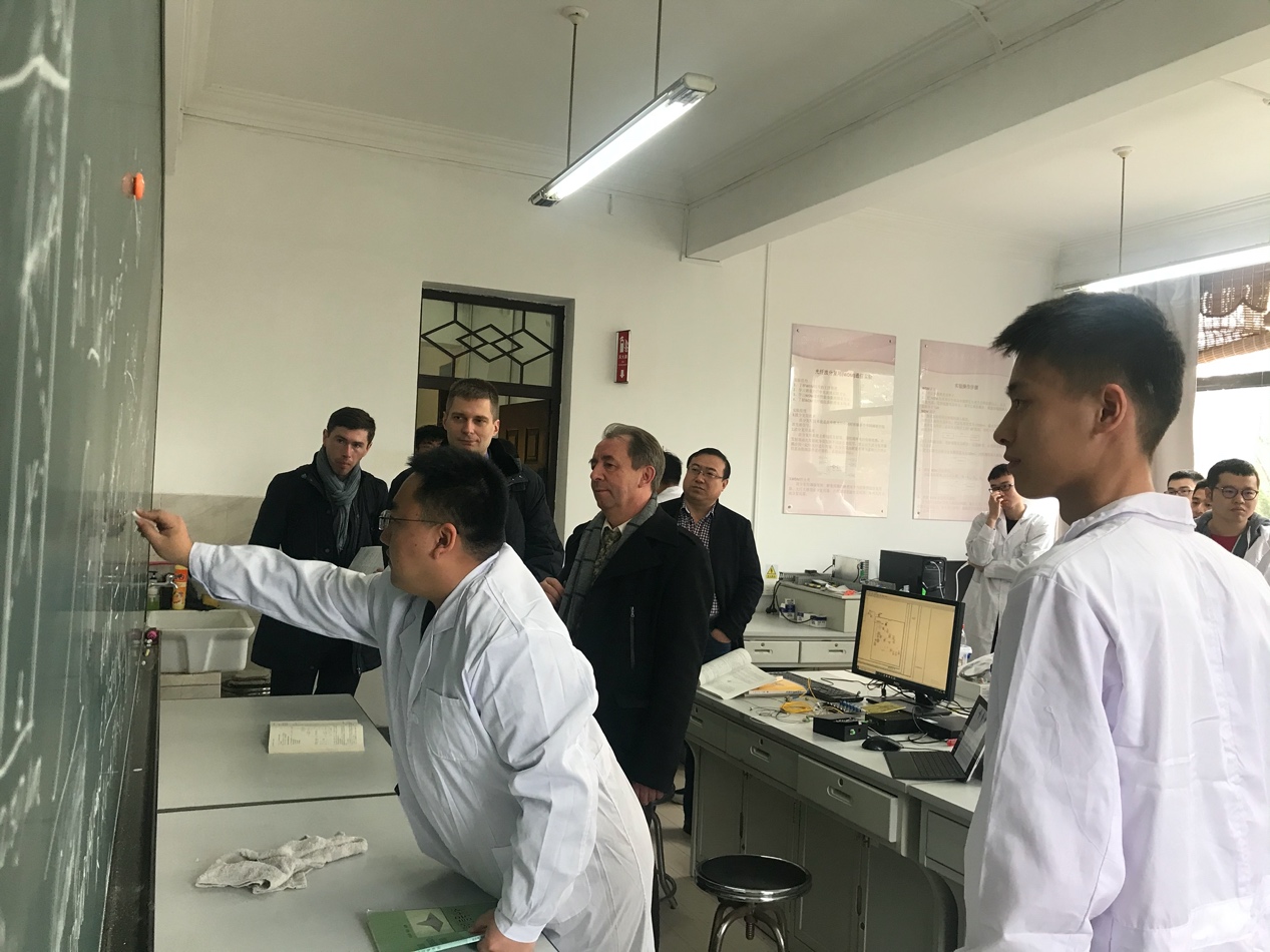 本次主要参观了华体会(中国)大学生实践活动中心以及大学物理国家级实验教学示范中心部分实验室,Tivanov院长及Tostik主任在参观过程中也简单介绍了白俄罗斯国立大学物理教学实验室的情况,并对我校的物理教学实践和实验给予充分的肯定。