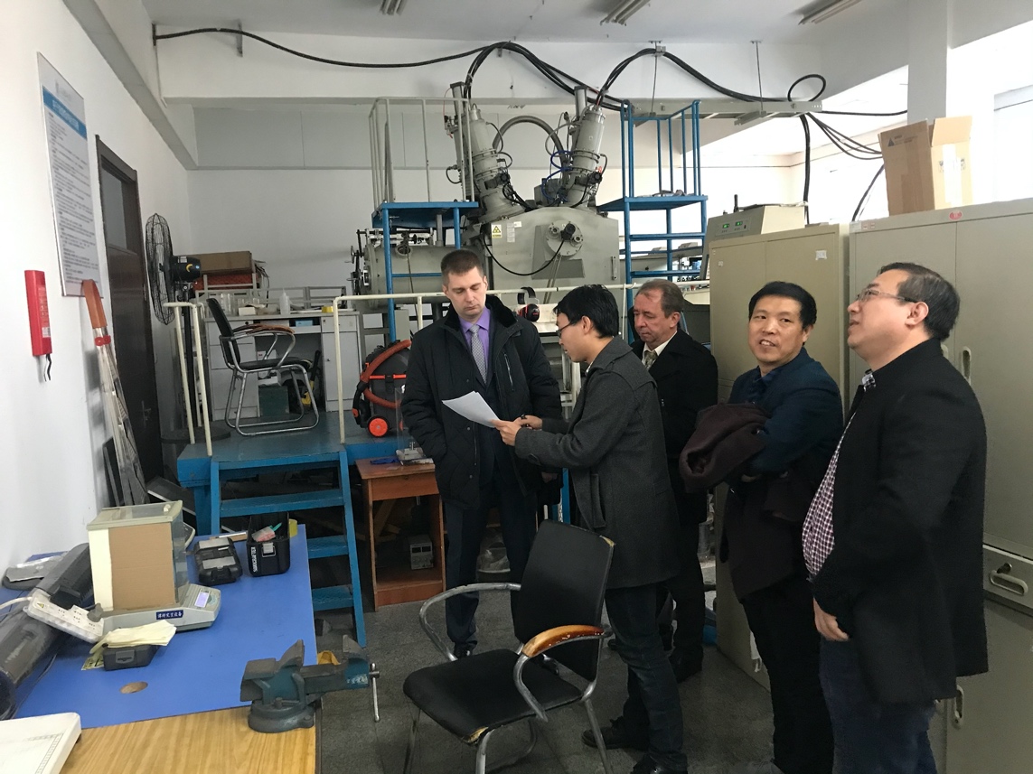 11月21日,白俄罗斯国立大学华体会(中国)院长M. Tivanov,激光物理和光谱学系主任A. L. Tolstik教授以及中白学院白方副院长M. Denis一行3人来到华体会(中国)参观实验室并进行调研。华体会(中国)副院长于长水、中白学院那晓及相关实验室负责人陪同参观交流。