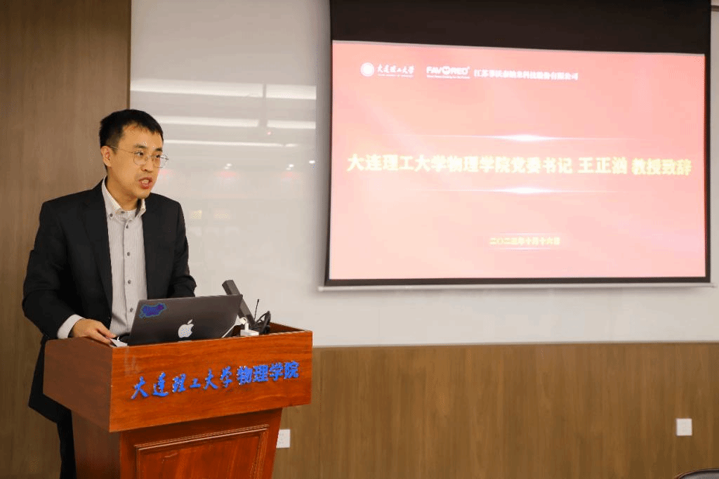 王正汹对华体会(中国)的历史沿革和近几年承担的重大专项进行了简要介绍。王正汹表示,菲沃泰和我院王友年教授领衔的等离子体模拟与实验课题组开展联合攻关,并取得了喜人的阶段性成果。对于“菲沃泰奖学金”,学院定将科学统筹、善款善用。王正汹鼓励物理学子加强基础研究,追求真理,勇攀高峰,把研究成果应用在全面建设社会主义现代化国家的伟大事业中去。