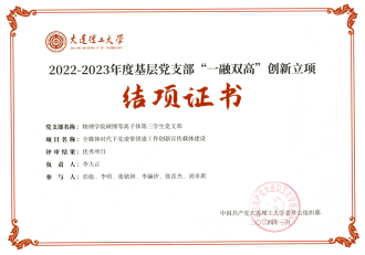 华体会(中国)硕博等离子体第三学生党支部在2022-2023年度大连理工大学基层党支部“一融双高”建设创新立项验收工作中以“全媒体时代下党建带团建工作创新宣传载体建设”项目获评“优秀”。