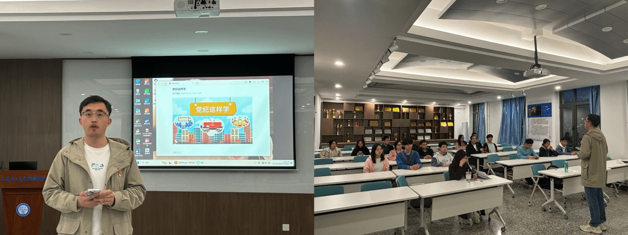 为积极响应党中央《关于在全党开展党纪学习教育的通知》的指示精神,贯彻落实《中共大连理工大学委员会关于在全校党员中开展党纪学习教育的实施方案》中的各项要求,推动《中国共产党纪律处分条例》(以下简称《条例》)入脑入心,华体会(中国)硕博等离子体第三学生党支部于4月26日19:00在系楼322室召开“学习党规党纪,弘扬五四精神”主题党日活动,本次活动由支部书记李大正同志主持,支部全体党员参加。本次活动的主要内容有学习新修订的《条例》和开展“五四”主题党史知识竞赛。