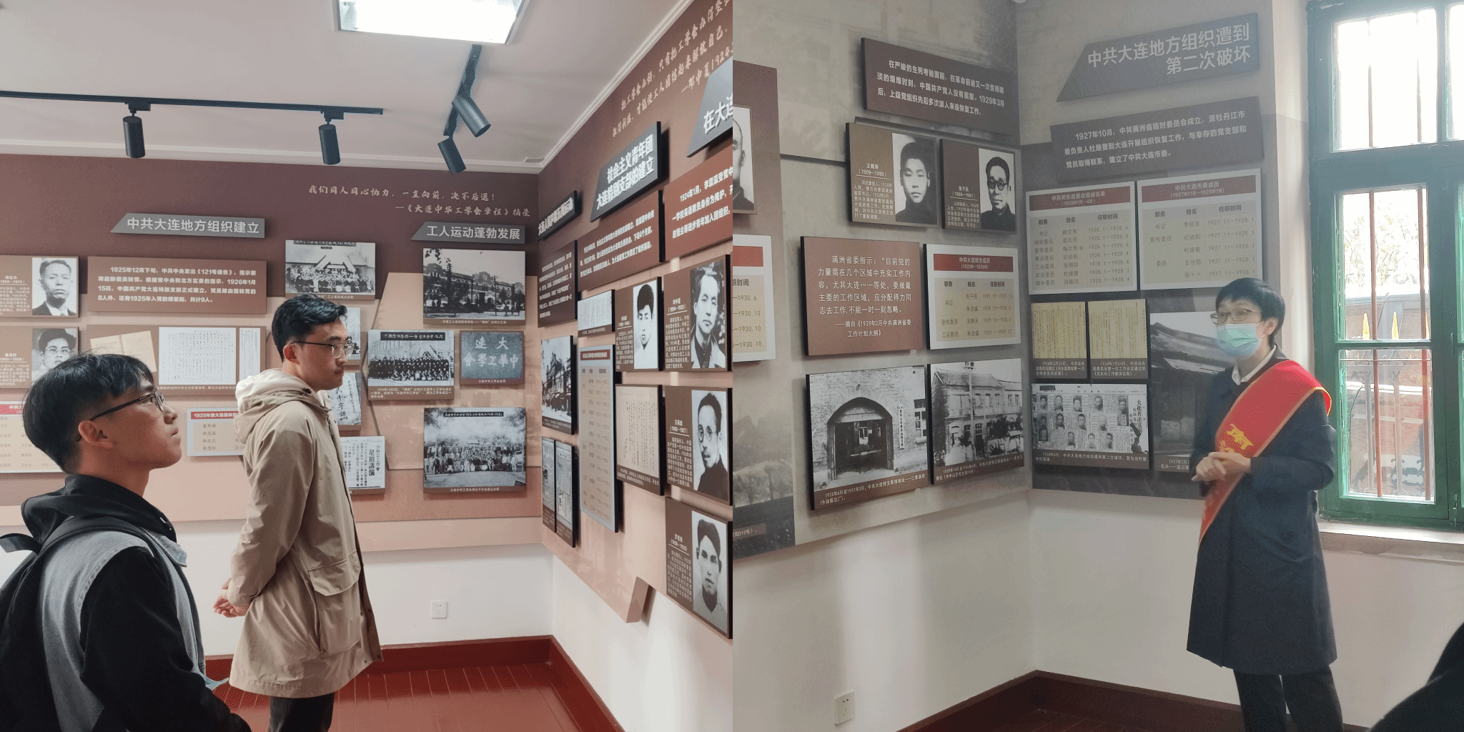活动第一站,同志们来到了大连中华工学会旧址纪念馆—大连党组织光辉历程的开篇。大连中华工学会成立于1923年12月2日,是中国东北地区建立最早、最先接受中国共产党领导的工人团体。1926年4月27日,在中国共产党的领导下,中华工学会发动了“福纺”纱厂工人大罢工,罢工坚持了百日,取得了最后的胜利。大连中华工学会推动了大连工人运动的兴起和反帝爱国统一战线的形成,是中国共产党领导下的中国工人运动的重要组成部分。进入中华工学会旧址,党员们参观了陈列室,重温党领导大连工人运动的光辉历程,缅怀革命先烈的丰功伟绩。在这里,同志们接受到了深刻的精神洗礼。