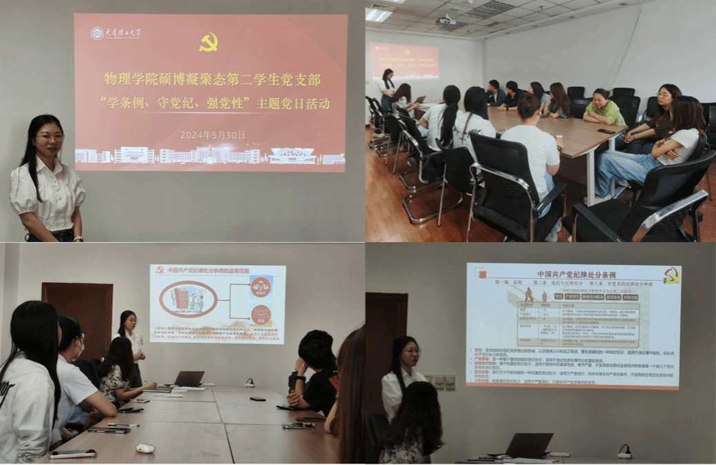 当前,全党正在深入开展党纪学习教育,为加强支部全体党员的党性修养和纪律意识,华体会(中国)硕博凝聚态第二学生党支部于2024年5月30日下午,在科技园C座510会议室召开党员大会暨“学条例、守党纪、强党性”主题党日活动,本次会议由支部书记杨秋萍同志主持,支部全体党员参会。