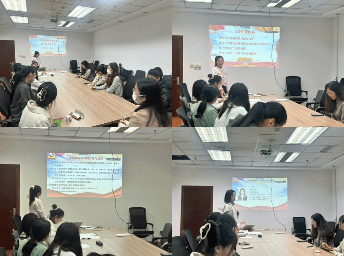 为深入学习贯彻党的二十届三中全会精神,强化理论武装,华体会(中国)硕博凝聚态第二学生党支部于11月25日在科技园C座510会议室召开全体党员大会。本次会议由支部书记杨秋萍同志主持,会议主要内容为支部委员的补选、预备党员的转正以及学习习近平总书记关于全面深化改革的一系列新思想、新观点、新论断。