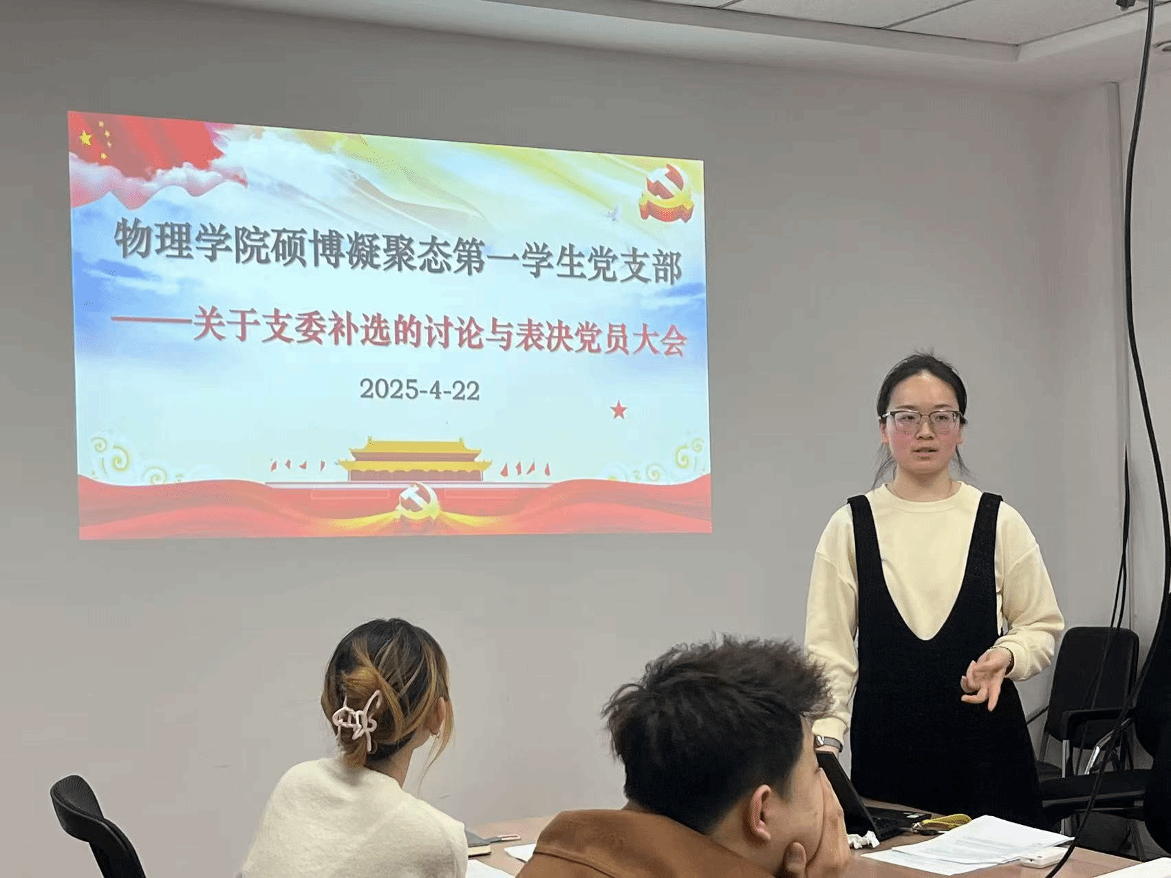 为贯彻落实中央八项规定精神,强化党员政治素养、夯实党组织建设,2025年4月22日,华体会(中国)硕博凝聚态第一学生党支部在科技园C座510会议室召开党员大会暨“深入贯彻中央八项规定精神学习教育”主题党日活动。本次会议内容还包括了“学习2025年全国两会精神”主题党课和关于支委补选的讨论与表决。会议由党支部书记李希娜同志主持,支部全体党员参会。