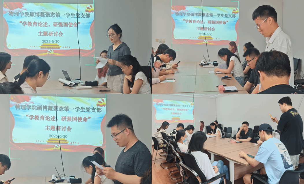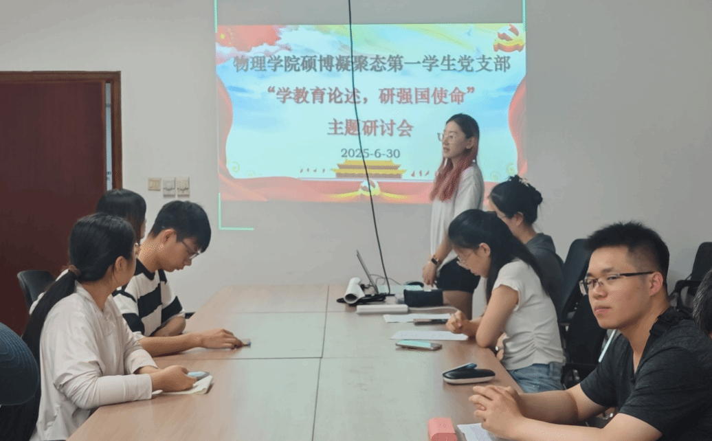 为巩固党员集中学习成效,准确把握习近平总书记关于教育的重要论述精神,同时庆祝中国共产党成立104周年,2025年6月30日上午10点,华体会(中国)硕博凝聚态第一学生党支部在科技园C座510会议室开展主题党日活动暨党员集中培训主题研讨会,会议由党支部书记郑祉溦同志主持,党支部全体党员参会。