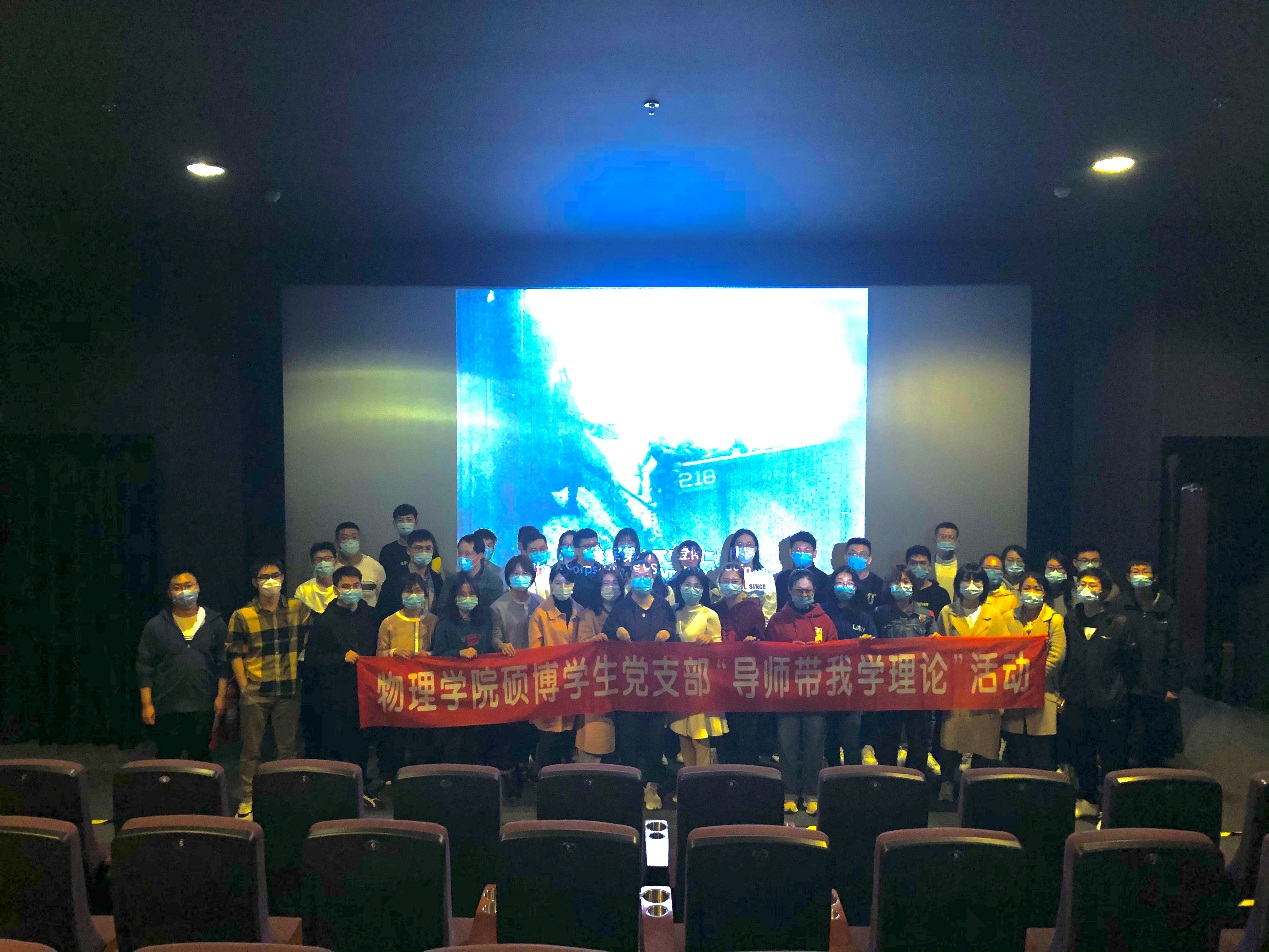 在举国上下隆重纪念中国人民志愿军抗美援朝出国作战70周年之际,为落实上级党组织安排部署,教育党员更深入了解抗美援朝相关知识,营造学习伟大抗美援朝精神的浓厚氛围,培养党员的历史观和责任感,更好地向抗美援朝英雄模范和战士致敬,华体会(中国)硕博原子与生物学生党支部联合硕博理论物理学生党支部、硕博光学学生党支部结合“导师带我学理论”的契机,于2020年10月27日组织支部党员和发展对象走进电影院观看电影《金刚川》,并邀请了原子与分子物理专业研究生导师韩永昌教授和柴硕副教授来参加指导此次活动。