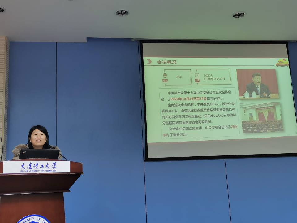随后,机关党委副书记孟秀英。对党的十九届五中全会公报新提法进行解读。孟秀英副书记深入浅出的解读,让我们了解到本次会议的主要成果:(1)勾画了“十四五”的发展蓝图。(2)提出了“我国发展仍然处于重要战略机遇期”的新论断。(3)“国力强”、“人民富”、“底气足”的新目标。(4)人民对美好生活的向往就是我们的奋斗目标的新部署。