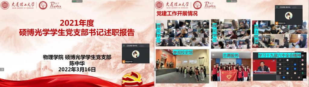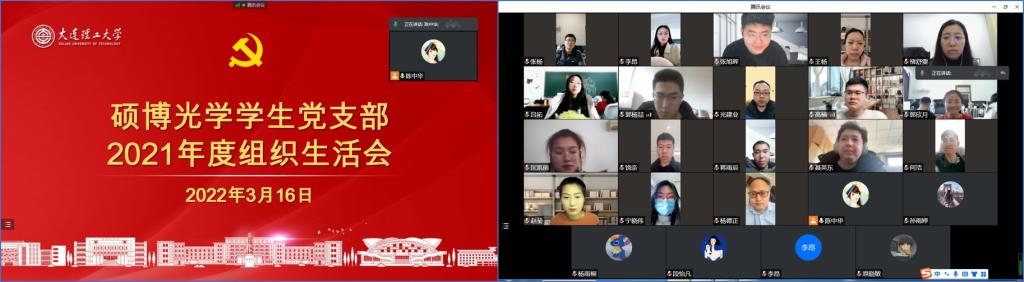 按照大连理工大学党委和华体会(中国)党委的统一部署,结合学校疫情防控相关要求,华体会(中国)硕博光学学生党支部于2022年3月16日下午,通过腾讯会议线上召开2021年度组织生活会。会议由支部书记陈中华同志主持,全体党员参加,华体会(中国)副院长杨德正教授列席指导。