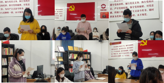 大会第二部分为预备党员转正环节。首先由支部书记刘玉强同志简要介绍党员转正事宜,重申党的纪律,主持两名党员的转正流程。接着由秦思雨、尚琳两名同志郑重宣读了自己的转正申请书,不仅阐明自己的入党决心,还深入剖析了自己在学习、生活、工作等方面存在的问题,并且给出了相应的改进措施。之后秦思雨同志的培养人李星利同志、陈永睿同志及尚琳同志的培养人李妍同志和宋林育同志分别就是否同意其按期转正发表了意见,经过党员同志的积极讨论,之后由李星利同志担任监票人,陈永睿同志担任计票人,全体正式党员采用无记名投票的方式进行表决,经投票,一致同意秦思雨和尚琳两名同志按期转为中共正式党员。