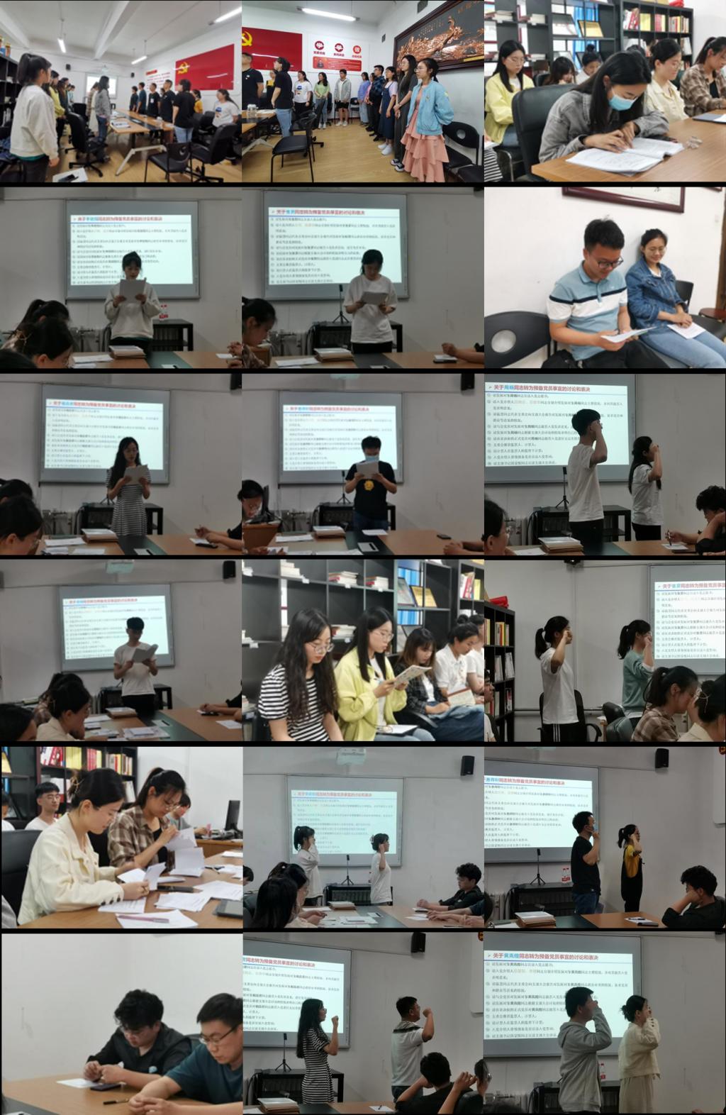 会议第二项,讨论接收惠得轩等六名同志为中共预备党员。会议严格按照发展党员工作程序相关规定进行。首先,全体起立,奏国际歌。随后,发展对象惠得轩、相垚君、张贤、李欣阳、周杨、黄高煌六名同志依次宣读入党志愿书,从对党的认识、入党动机、本人履历、家庭和社会主要关系等方面向支部大会作了详细汇报。接着,分别由各自的入党介绍人介绍对发展对象的考察情况,并对其能否入党表明态度。接下来,组织委员温慧同志如实向大会报告发展对象的考察情况以及综合政治审查情况,并代表支委会对其能否入党表明意见。在与会党员分别对六位同志能否入党进行充分讨论,并指出其优点和不足之后,与会党员进行了无记名投票。支委会推荐监票人、计票人由白雪、李娜同志担任,并全票通过。最终,六名同志得到了全体与会党员的一致认可,获得了全票通过。六名同志也向大会表明今后要以党员标准严格要求自己,改进不足,努力工作,争取早日正式加入中国共产党。最后,由入党介绍人分别带领六名同志在党旗下宣读入党誓词,并由党支部书记段蒙悦同志宣读会议通过接收惠得轩等六名同志为中共预备党员的决议。