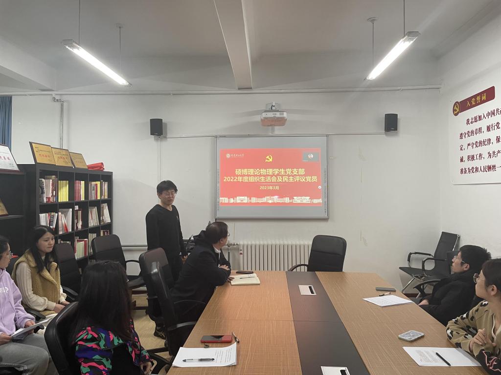 根据学校党委《关于召开2022年度基层党组织组织生活会和开展民主评议党员的通知》和学院党委的部署安排,支委会为更好开展组织生活会和民主评议党员相关工作进行精心准备,会前,支部围绕《学习党的二十大精神,正确理解中国式现代化》的主题党课教育,为开展好组织生活打下思想基础。硕博理论物理学生党支部2022年度组织生活会和民主评议党员于2023年3月2日晚7点在422会议室采取线上与线下相结合的方式进行开展。本次会议的主要内容有两部分,党课集中学习与组织生活会和民主评议党员。其中,集中学习围绕深入贯彻党的二十大精神和毛泽东同志“向雷锋同志学习”题词发表六十周年来开展。本次会议由支部书记刘玉强同志主持,华体会(中国)副院长于长水同志出席会议,支部全体党员参加。