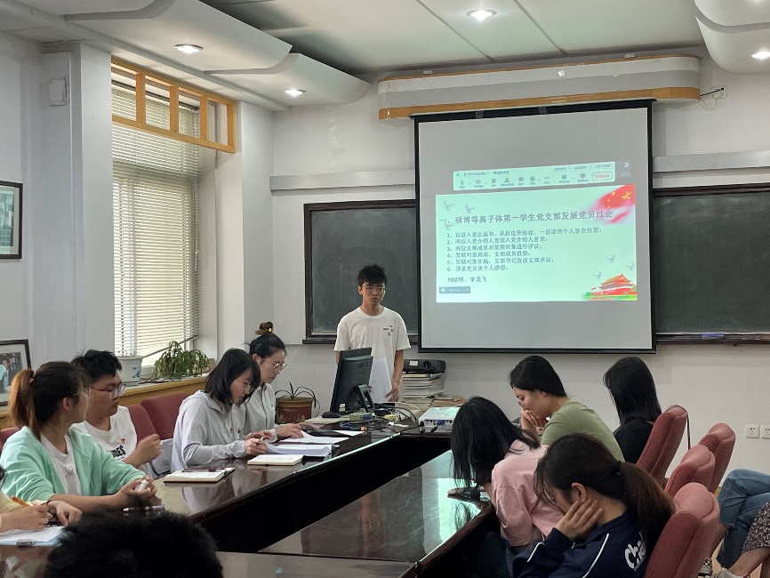 为加强党员队伍建设,积极推进党员发展工作,健全完善机制,发挥党支部的战斗堡垒作用。按照学院党委统一部署并报党委批准,经硕博等离子体第一学生党支部支委会研究,华体会(中国)硕博等离子体第一学生党支部于2023年6月12日在三束一号楼205室召开党员大会。大会主要内容包括讨论刘世明同志和李龙飞同志的入党过会以及支部委员述职,会议由党支部书记崔紫宵主持,支部全体党员均到会参与。
