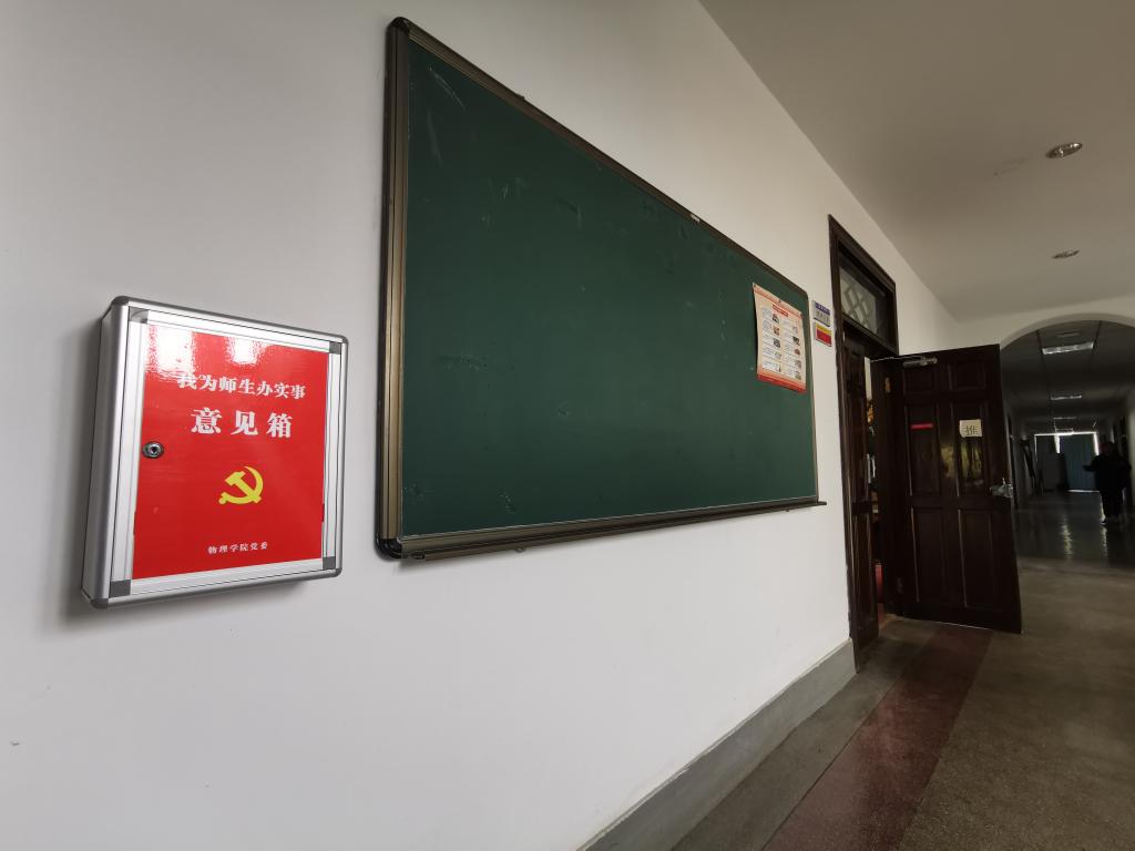 2、“我为群众办实事”意见箱:学院三楼中厅黑板左侧