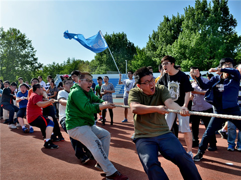 5月15日下午,校运动会项目之一拔河比赛初赛在中心体育场顺利进行。比赛分学院组,学部组,物理与光电工程学院参加学院组比赛。学院党委副书记兼副院长杨木老师,学生办公室主任李一鸣老师,团委书记佟西原老师以及12级队辅导员纪丹红老师来到赛场,为学院的队伍加油助威。