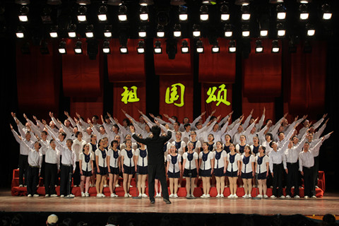 经过一个多月的精心准备,华体会(中国)合唱队踏上了“祖国颂”决赛的舞台。负责指挥的陈维午同学指挥精湛,带动了合唱队的热情。华体会(中国)的第一首曲目是《在灿烂的阳光下》,通过歌声表达对中国共产党的热爱,“知党情”、“颂党恩”,歌曲分为男高音、男低音、女高音、女低音四个声部。训练期间,每个声部都由声部长带领大家练习,并在学院文化部的同学指导下进行。第二首歌曲是《心儿飞翔》,是一首劳动颂歌,由女生单独演唱。