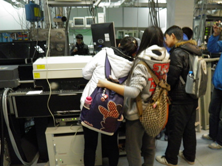 在参观的过程中,化物所专业的研究人员耐心地为同学们讲解现代前沿技术,飞秒激光、超低温反应容器、分子束交叉反应等一系神奇的技术走出纸面,生动地展现在同学们眼前。同学们热情高涨,积极地配合讲解员,把看见的高端技术与在学校学到的理论知识相联系,将理论与实践相结合。