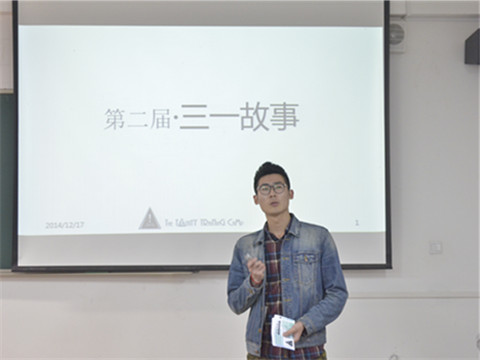 学生会主席曾祥宇应邀讲述了三一训练营幕后的故事。策划、模拟、准备……他们不曾松懈,不曾放弃,为同学们搭建了全新的三一、不一样的训练营。曾祥宇对本次三一训练营,对团学社工作进行了肯定,并祝愿三一训练营越办越精致,物理团学社更加团结实干。外联部部长高翔也就三一的含义与三一训练营的宗旨向大家进行介绍。