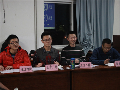 12月6日晚,面向14级新生辩手的“四院辩论赛”于材料馆307进行了物理与光电工程学院对抗材料科学与工程学院的激烈比拼,我院作为正方就“贫穷/富贵更容易滋生丑恶”的辩题同反方辩友展开了精彩的对决。最终,我院以轻微弱势不敌对方。