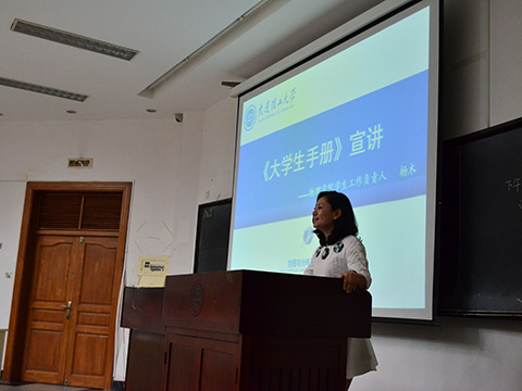 9月3日晚,物理与光电工程学院14级新生大学生手册宣讲会于综一151顺利召开。出席本次宣讲会的有华体会(中国)副院长周玲教授、党委副书记兼副院长杨木老师、14级辅导员梁勇老师。