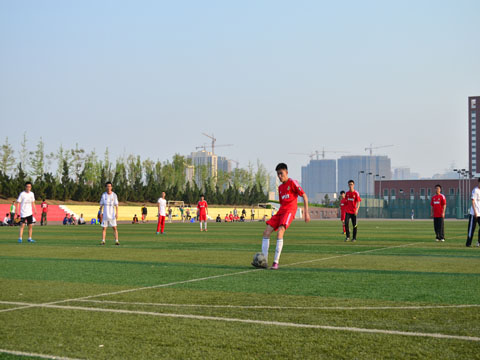 上半场进行到一半时,华体会(中国)队员抓住对方一个失误,将球传入对方禁区,射门得分,拿到本场比赛的第一分。不一会儿,创新学院队员禁区内“手球”,华体会(中国)得到点球机会。华体会(中国)足球队大四队员刘睿轻松将球射入球门,华体会(中国)拿到第二分。然而过了不到十分钟,华体会(中国)队员再次将球送入了对方的大门,拿到第三分。