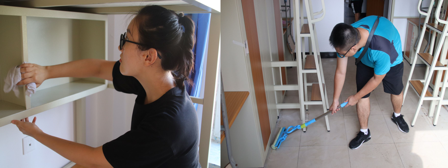 8月29日,距离新生报到还有两天的时间,华体会(中国)各个部门已经开始迎新的准备工作。上午8点,学院团学社全体骨干成员开始打扫学院2018级新生宿舍,同学们领着各自的任务开始检查床柜、擦拭阳台、清除灰尘、拖洗地板等。