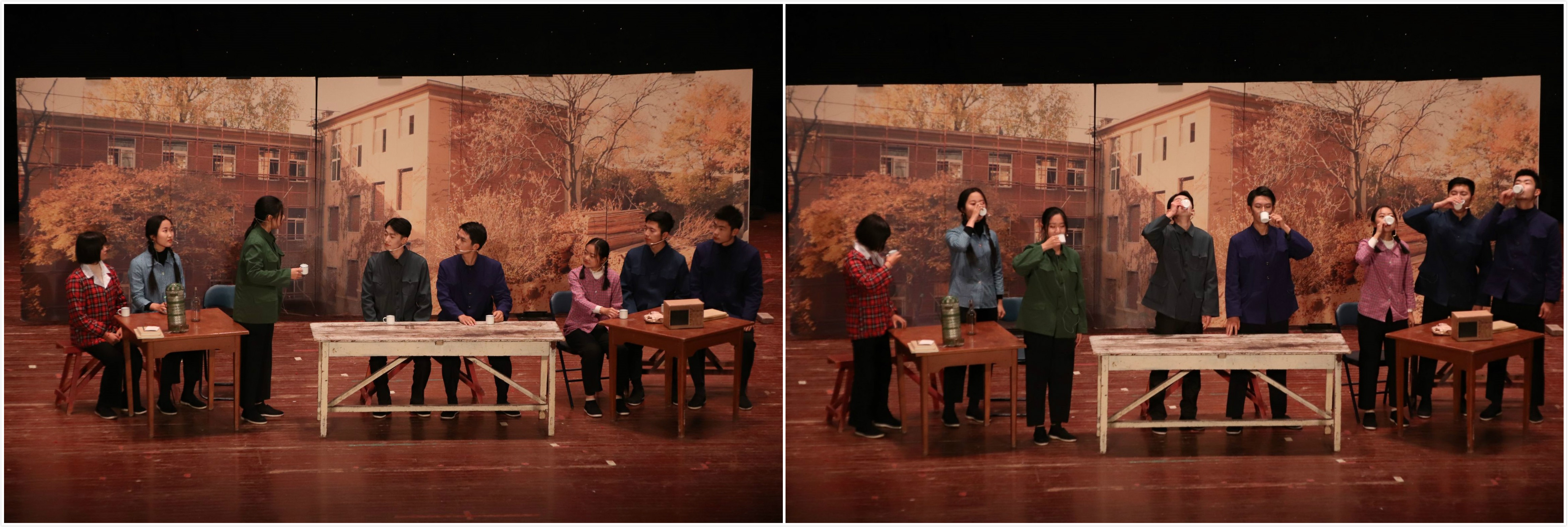 话剧从工地上的王大珩与同学们开始,在那物资匮乏的年代,大工师生一同建筑自己的实验楼,他们不辞辛劳,只为大楼能快快建起。紧接着,面对昌思公司代表提供的优厚条件,王大珩决然拒绝,那一声铿锵有力的“物理系一日不建成,我就一日不会回去的!”是他慷慨的爱国《离骚》,炎黄的血液在他心中流淌,王大珩先生宁愿放弃舒适的条件,也要选择艰苦的生活环境,只为中华之崛起。然后面对同学们的抱怨,王大珩耐心教导着大伙“作为物理人,要吃得了苦,无论实验器材多么破旧,也能想办法把它凑出像样的东西来!”一句句循循善诱的话语,一声声深情的倾诉,展现大工物理人百折不馁的精神。
