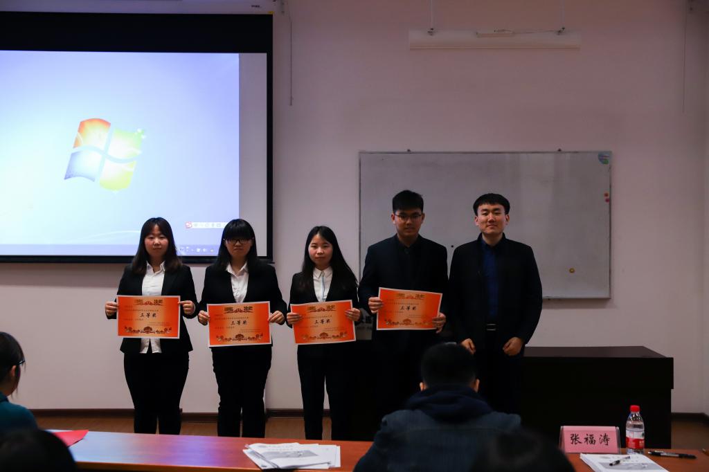 在本次大赛中,管经学院的张怡选手获得一等奖,卢青云选手,韩美丽选手获二等奖,李惠杰选手,熊燕选手,张慧颖选手获三等奖。华体会(中国)的林雪茹选手获得一等奖,孙宗瑞选手获二等奖,解钊选手获三等奖。其中,获二等奖及以上的选手将代表各自的学院参加更高一级的大赛。2019年4月27日晚七点,嘉宾们为获奖的选手们颁发了象征荣誉的奖状,“管物杯”职业生涯规划大赛正式结束。