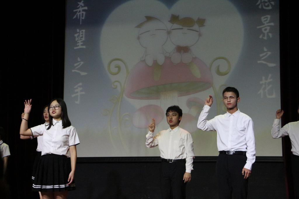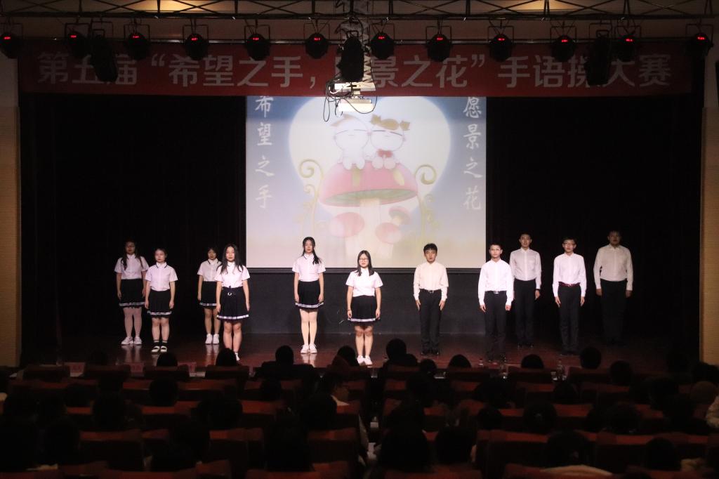 华体会(中国)所选的手语操表演的曲目为《小幸运》,我们的生命中都会遇见某一个值得我们真心对待的人,对那些我们生命中最爱的人,华体会(中国)的学子们以手语操的方式表达了出来。节目开始,参赛的选手们摆成整齐的队形,女生们与男生们以精致的装扮出现在舞台上。舞台上整齐划一的动作,《小幸运》婉转动听的旋律,把舞台下的观众们深深的吸引。参赛选手们经过无数次的练习,把最好的状态呈现给现场的观众。