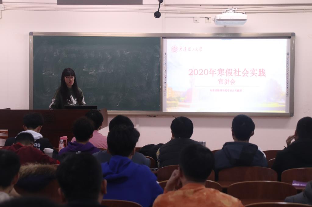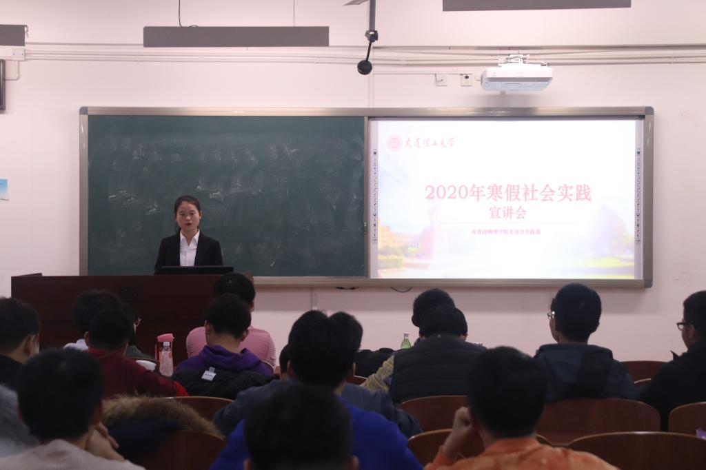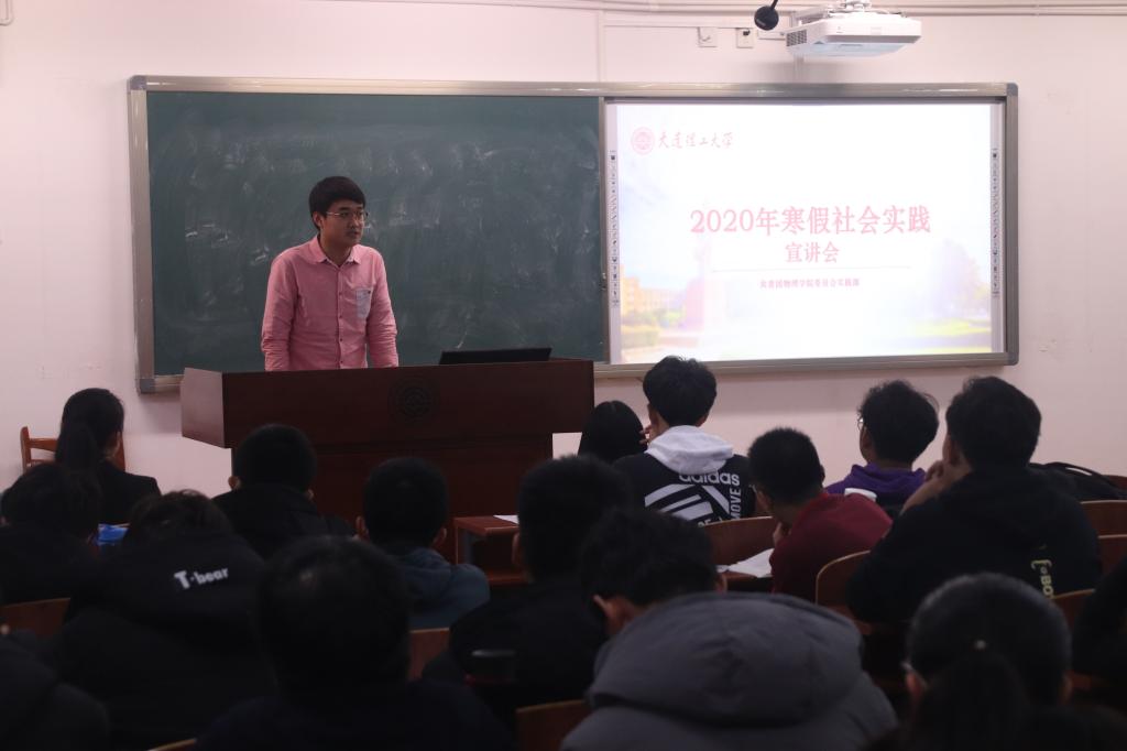 演讲会开始,唐雯月同学分别向大家展示 “传承红色基因” “大工学子母校行” “我们的中国梦”等几项实践主题的宣传片,接着就各个主题分别进行介绍,讲解结项审核、评优办法等方面的注意事项。并讲解本次寒假社会实践活动的相关事宜,分享有关寒假社会实践的经验,提出对同学们寒假社会实践活动的建议,同学们从唐雯月同学的分享中获益匪浅,对自己的寒假社会实践充满信心与期待。之后,华体会(中国)17级辅导员唐建璐老师谈论自己对于寒假社会实践的想法,并动员大家积极踊跃参与此次寒假社会实践。唐老师先从他自己在大学生活中参加社会实践的一些体悟以及社会实践对于他个人能力与信心的提升,指导建议大家积极参与实践,认真进行实践。然后,唐老师从物理学子本身特点的角度分析参与实践的必要性。最后,唐老师也表示出他对于这次实践活动的期待和信心,并对计划参与2020寒假社会实践的同学提出祝贺。