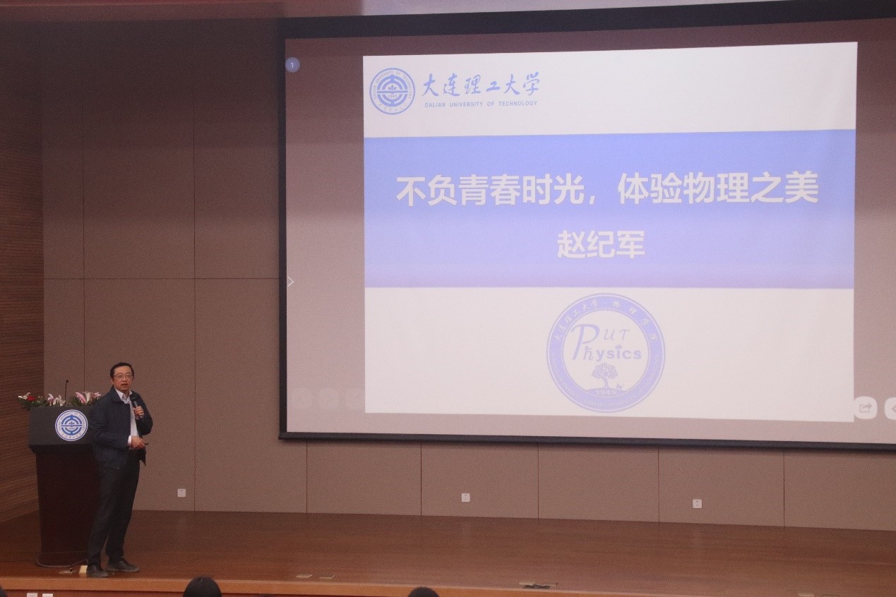 而后赵纪军院长希望同学们能够培养起对科学的兴趣,体验物理之美。他向同学们分享曹则贤老师的一句话:“物理学家是一群用公式唱歌的人”。物理学是一门基础理科专业,它既包含数学严谨之美,也有自然规律简介之美。并且赵纪军院长通过自身学习与科研经历向新生们讲述要积极体验学习知识,同时注重基础,也要重视创造知识,因为创造知识的乐趣和成功的喜悦更是难以言表。