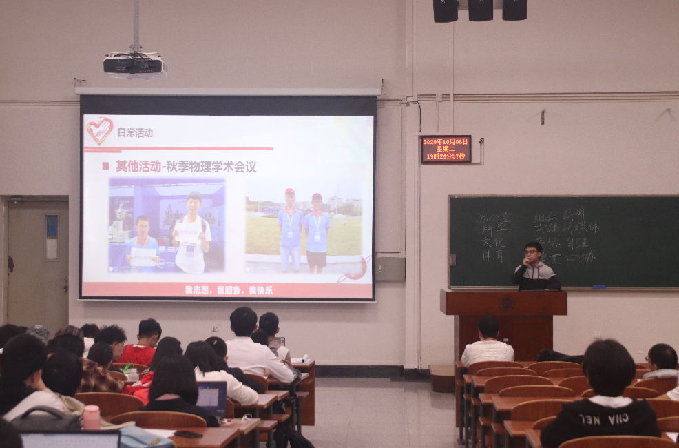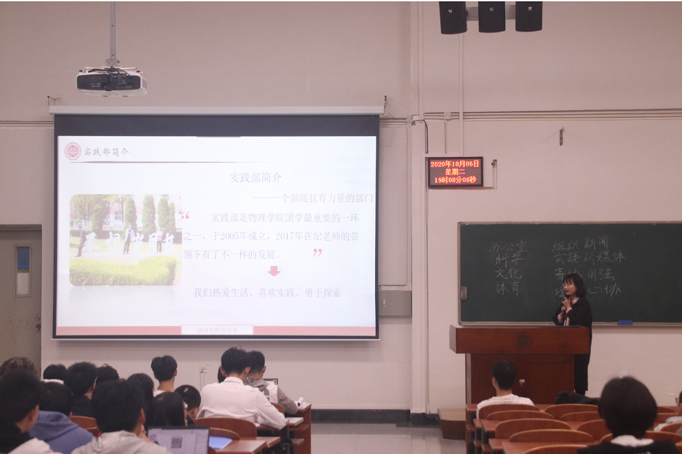 接下来,由各部门的部长介绍各部门的工作内容以及部门特色。从学生会到团委十二个部门依次进行介绍。在华体会(中国)的领导下,华体会(中国)团学社的各个部门分工合作,宣传并举办院内各种活动,共同致力于服务学生、学院建设。在招新宣讲会上,办公室新颖的ppt、体育部部长阳光开朗的开场白、以及实践部门的招新短视频等新颖有创意的招新方式引得全场热烈的掌声。在团学社部门招新宣讲完毕后,校青年协会、华体会(中国)足球队,华体会(中国)的辩论队向刚刚迈入大学的20级同学发出诚挚的邀请。