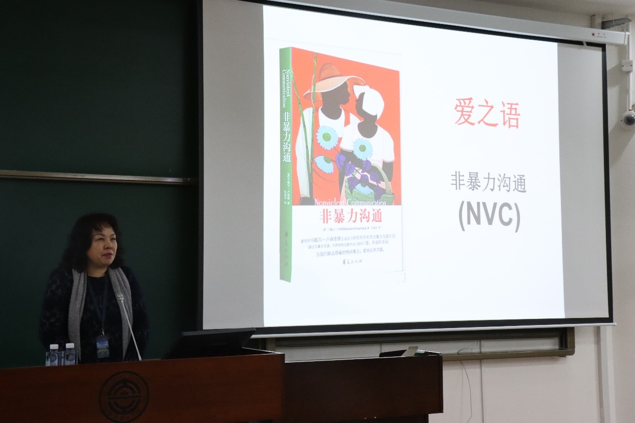 2020年11月18日下午14:00综合教学楼1号楼251,大连理工大学心理健康教育与咨询中心主任胡月教授,为华体会(中国)20级学生开展主题为“‘爱之语’—非暴力沟通”的心理讲座。胡月老师在讲座开始从几个小笑话切入,与现场同学们沟通讨论日常交流语言的艺术。讲座中,胡月老师与现场同学互动,生动形象地展示人际中的三种相处关系。她向同学们阐述非暴力沟通,让同学们意识到人际交流中非暴力沟通的重要性,大学生活人与人之间更要用非暴力沟通来搭起稳固的桥梁。