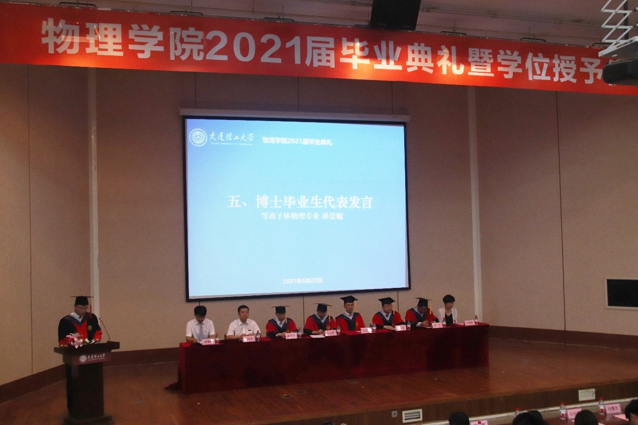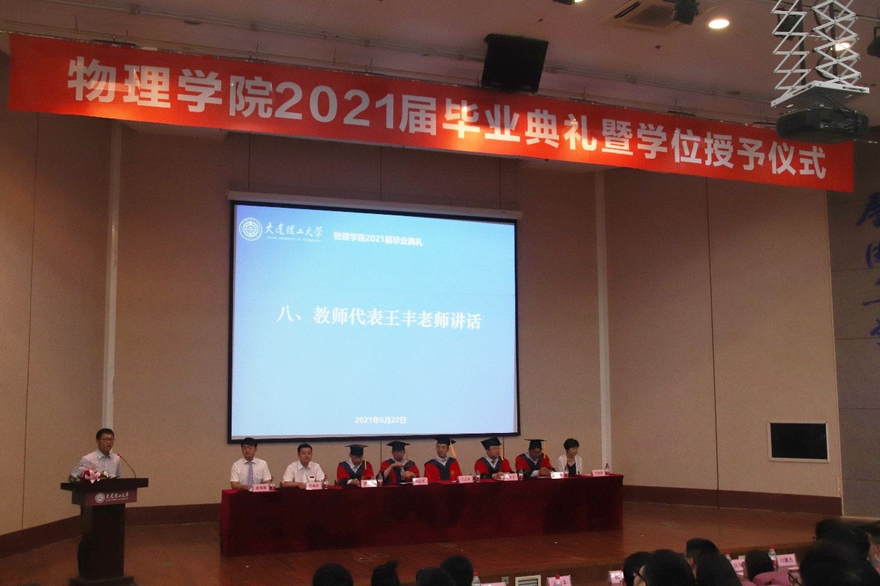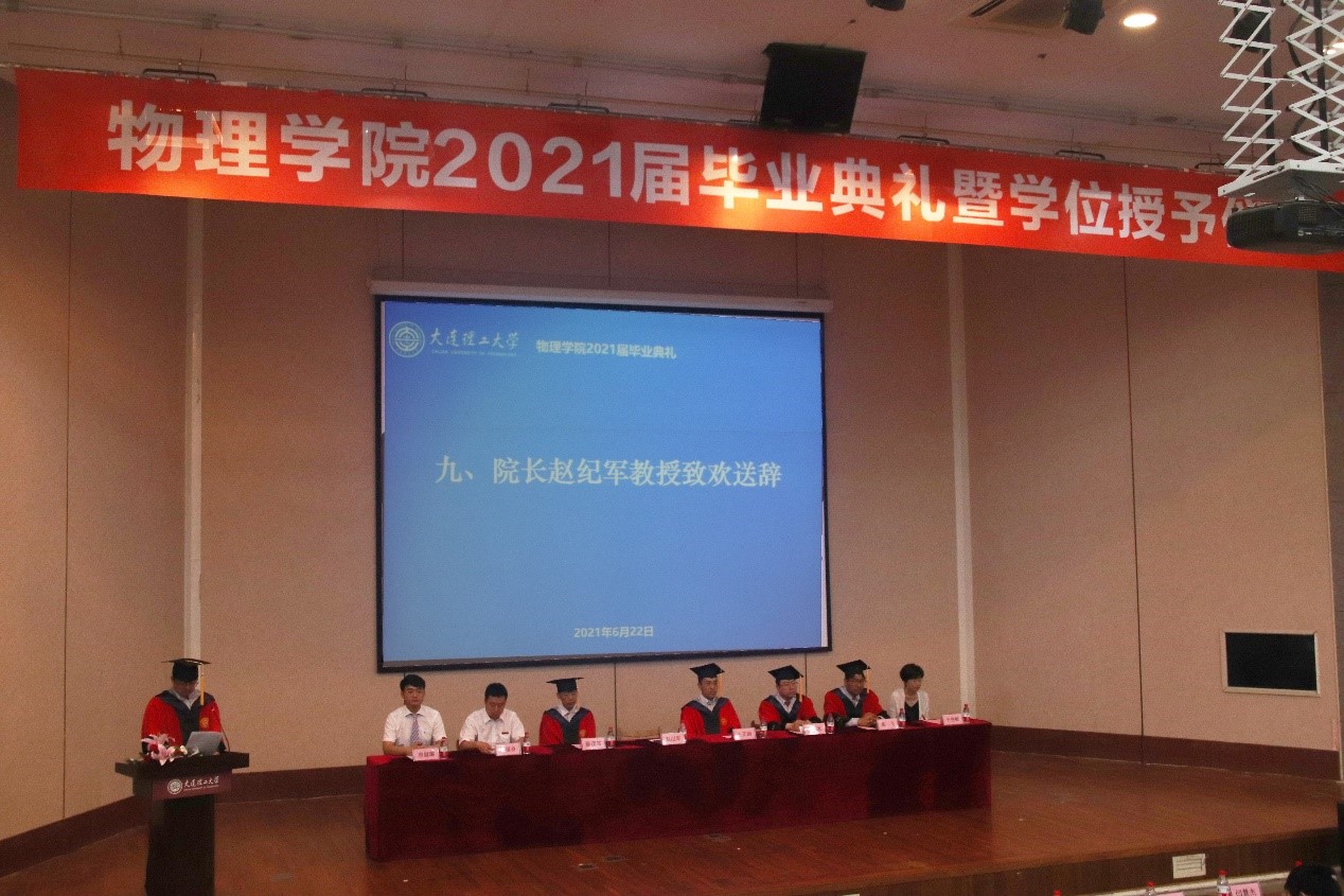 仲夏时节,万类竞秀,这是大工物理人收获的季节,也是告别的季节。在这感慨万千的时刻,华体会(中国)院长赵纪军教授向2021届毕业生表示最衷心的祝贺与最真诚的祝福,以及对辛勤培育学生的老师们的表示感谢。赵院长对过去五年间华体会(中国)取得的优越成绩进行总结,并肯定和赞赏华体会(中国)地红色基因和同学们的优良学风,深信大工物理的烙印将使同学们成为时代的建设者、开拓者、领跑者。