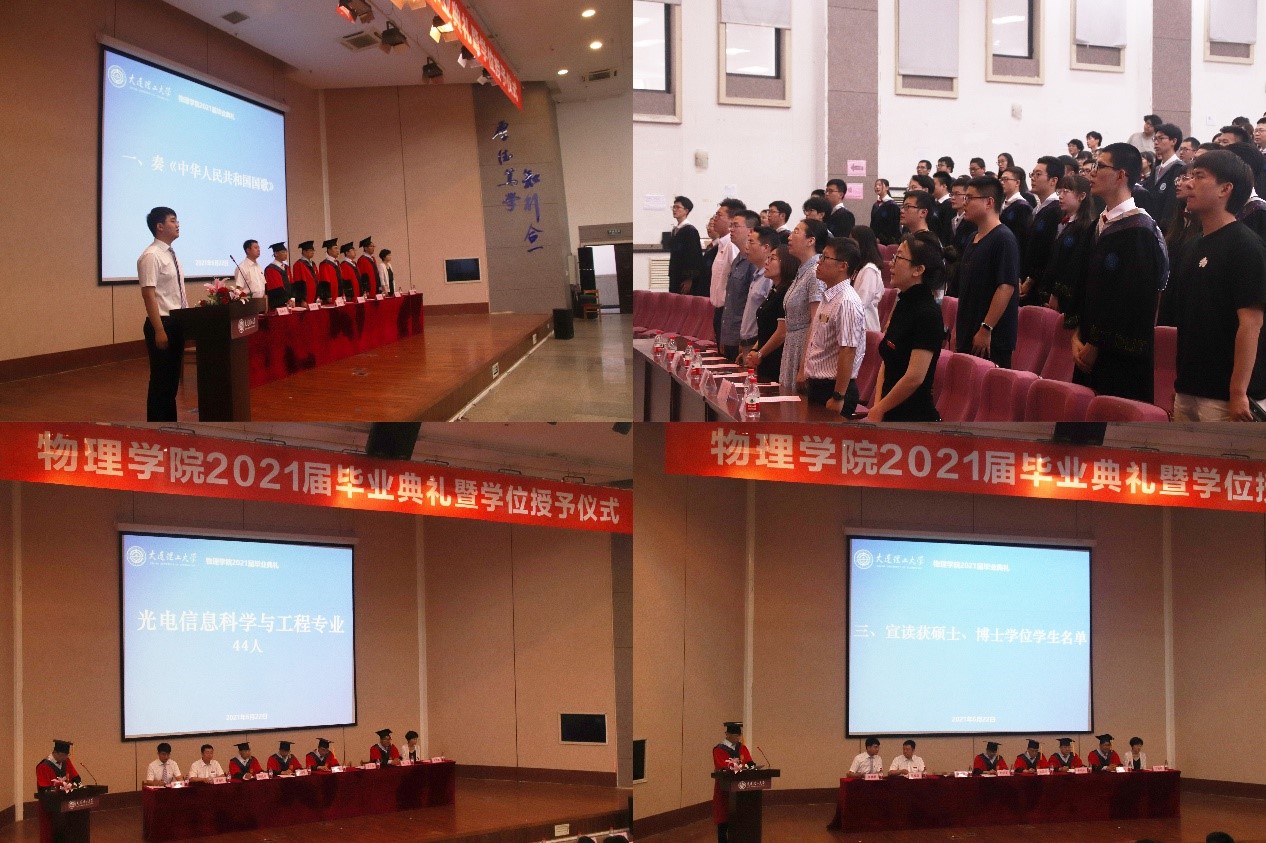 在大连理工大学校歌悠扬的旋律中,2021届毕业典礼暨学位授予仪式落下帷幕。在中国共产党成立100周年即将到来之际,愿所有2021届毕业生同学们前程锦绣,事业有成,为党和国家的事业发展贡献青春力量。