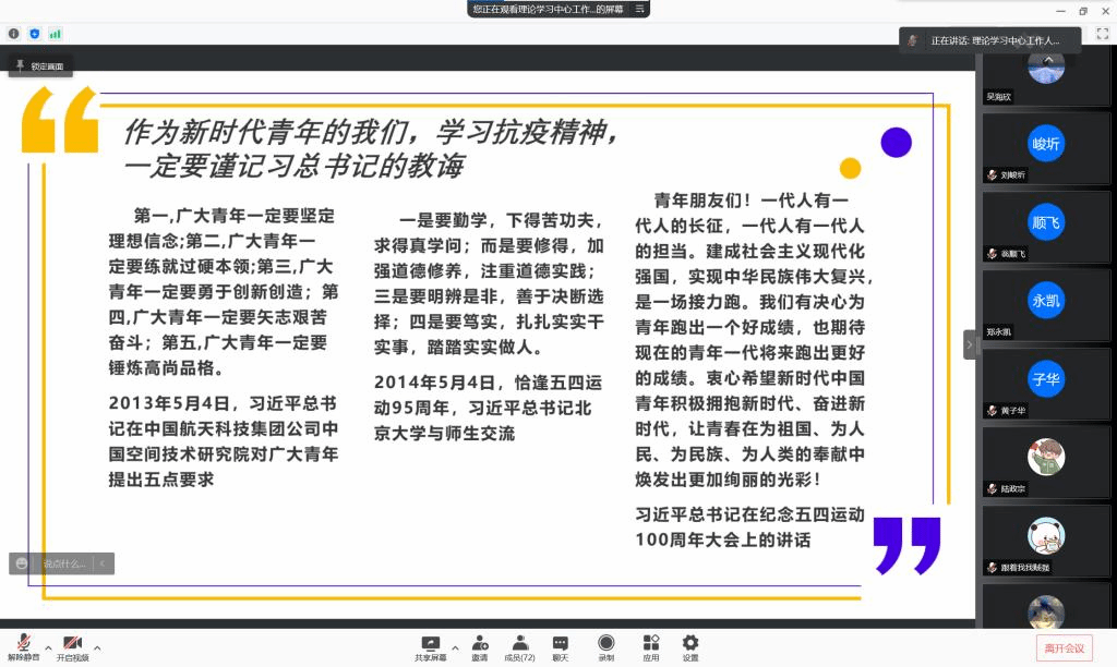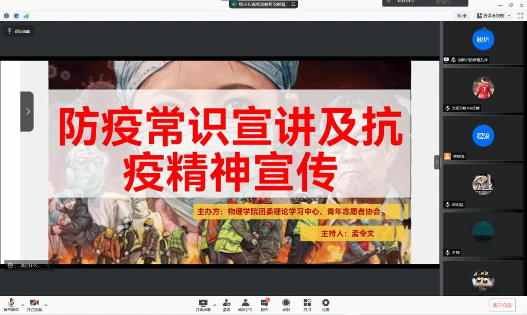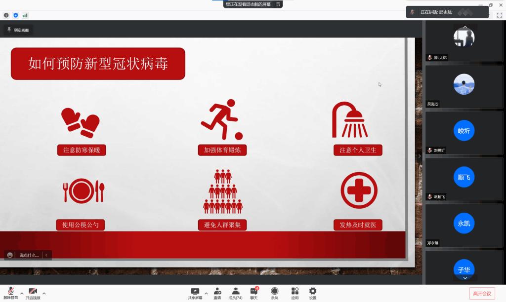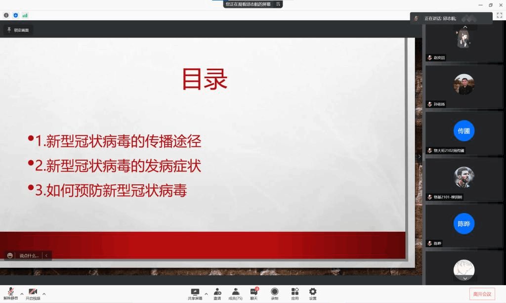 寒冬初至,疫情再次袭来,为学习防疫常识,弘扬抗疫精神,我们相约线上,召开了此次会议。本次宣讲会由来自理论宣传中心的孟令文同学主持,由邱志航同学和刘泽璇同学分别进行了宣讲,参加本次宣讲的还有华体会(中国)大一全体同学。
