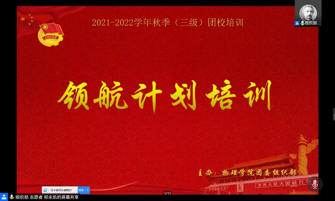 2021年11月28日晚,华体会(中国)三级团校培训采用线上形式顺利召开。参加本次会议的有华体会(中国)团委书记、20级队辅导员纪丹红老师,华体会(中国)团委副书记、21级队辅导员陈万年老师,校学生会熊天成同学,校团委朴舒梵同学、汪不凡同学,理论学习中心的吴海欣同学及华体会(中国)团学所有成员。