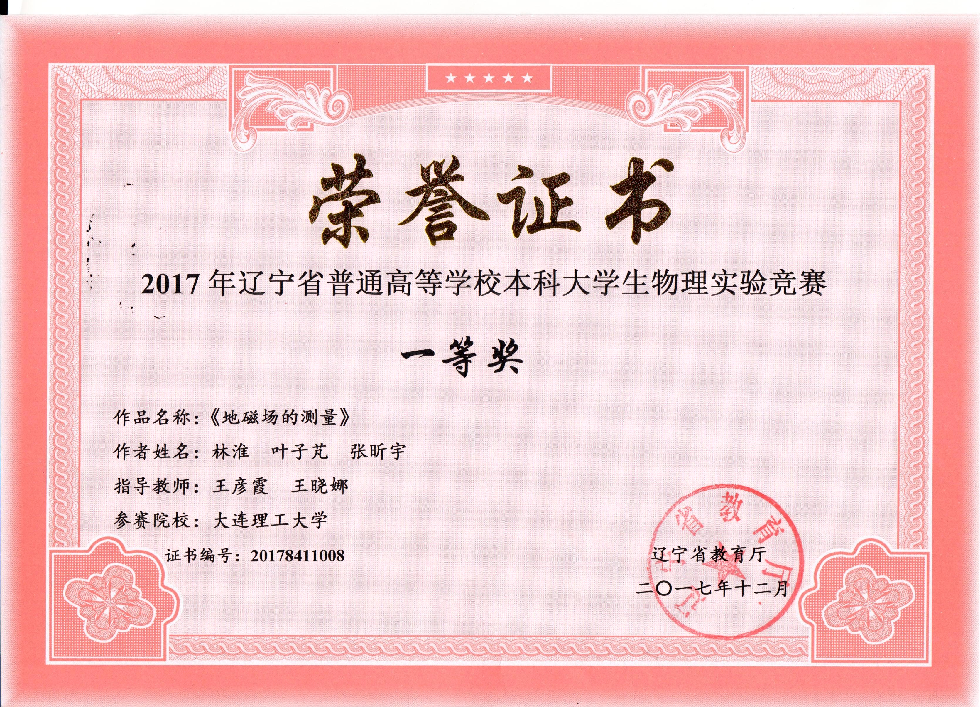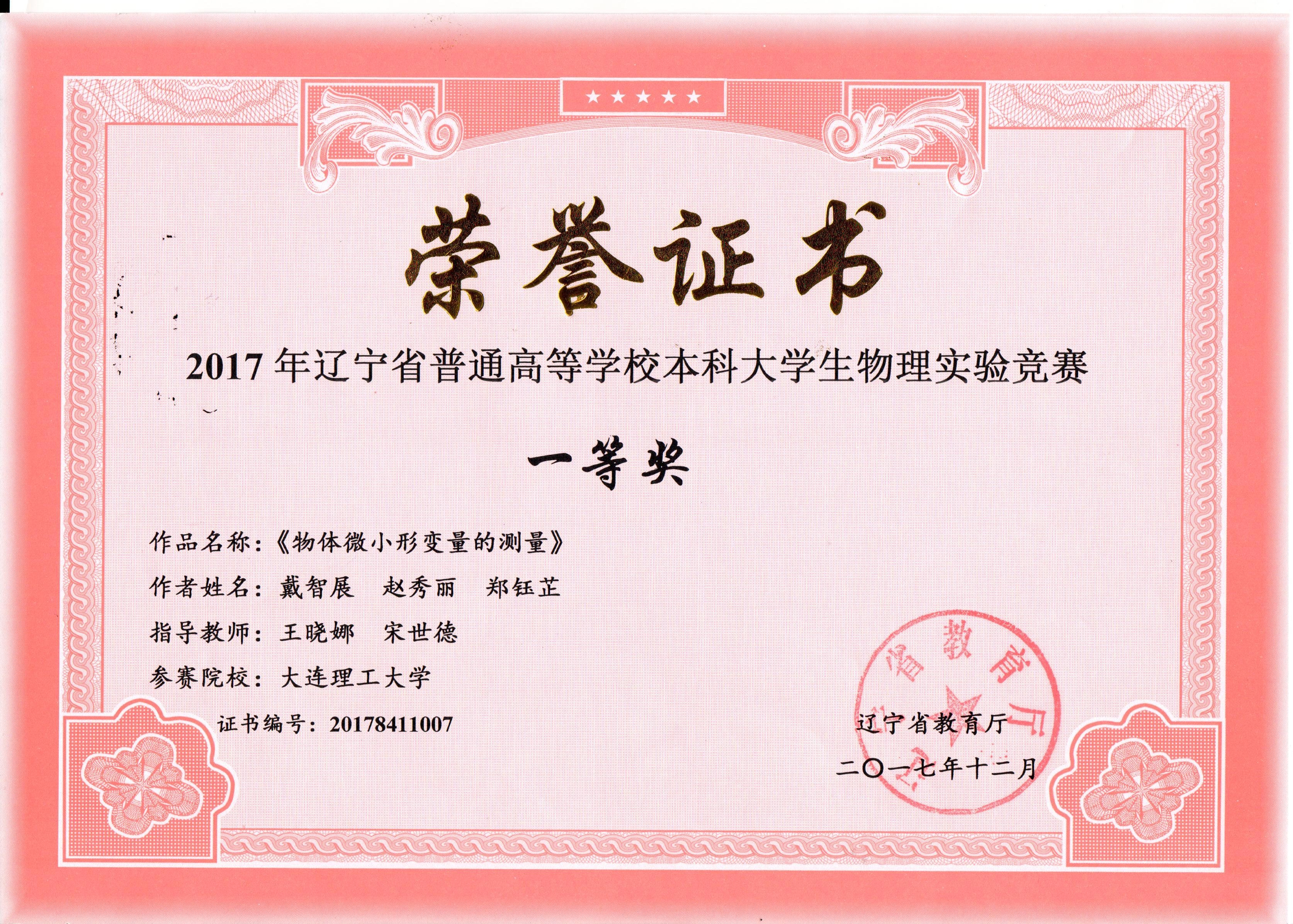 2017年辽宁省普通高等学校本科大学生物理实验竞赛一等奖