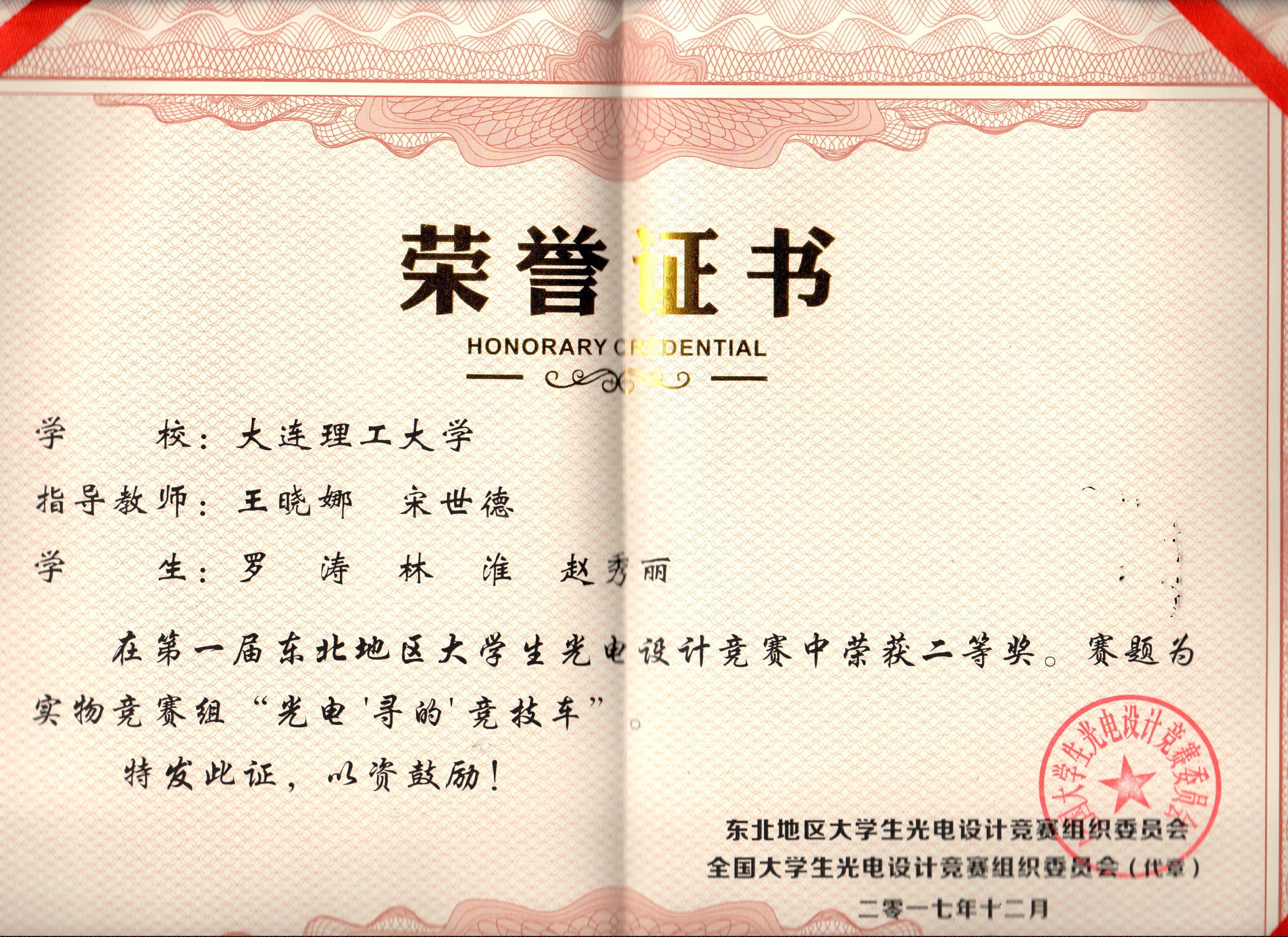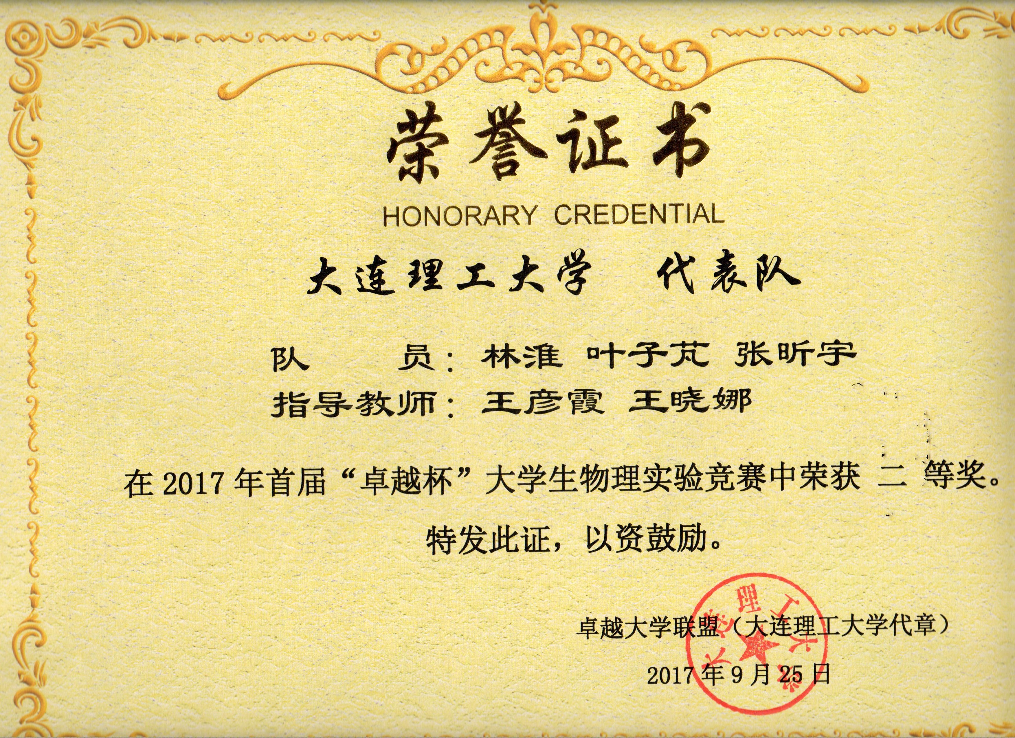 2017年“卓越杯”大学生物理实验竞赛二等奖